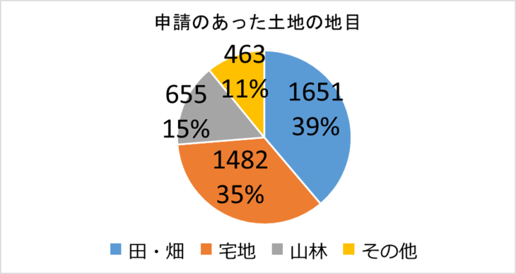 地目別では田・畑の申請件数が最も多く、宅地が続いています。