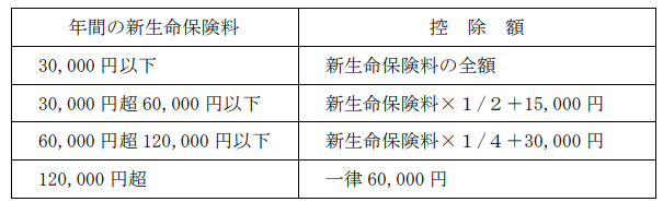 新契約(平成24年1月1日以後に締結した保険契約等)に基づく場合の控除額